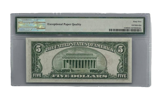 $5 Legal Tender Note, 1928E Fr-1530, PMG 65 Gem UNC