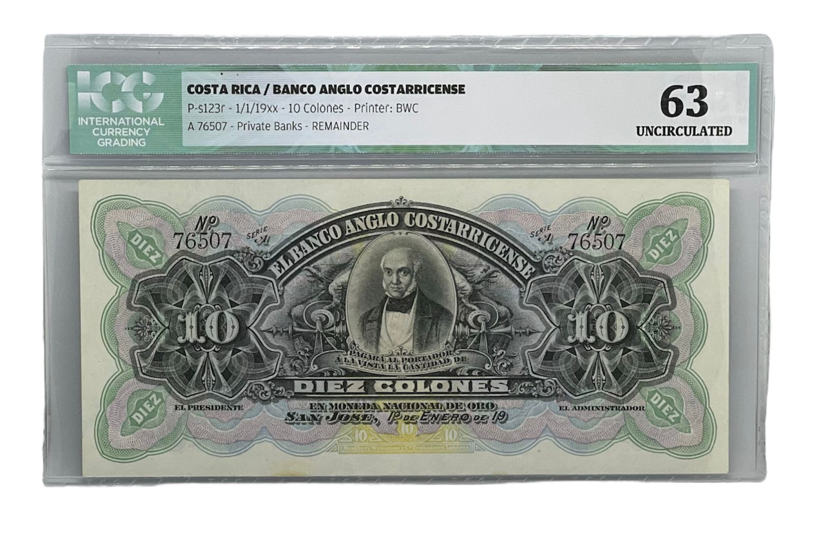 10 Colones, Costa Rica, P-s123r, 1/1/19xx, PMG 63 UNC