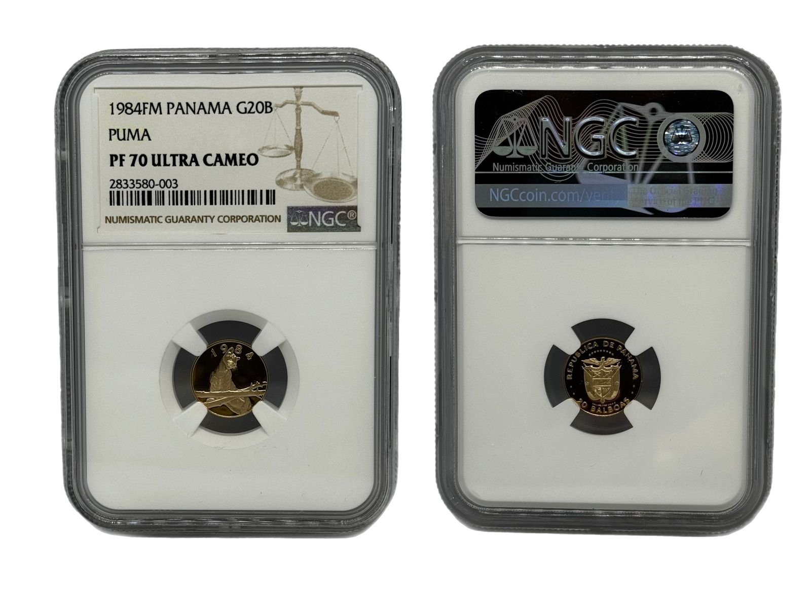 20 Balboas Oro 1984 FM Panamá NGC