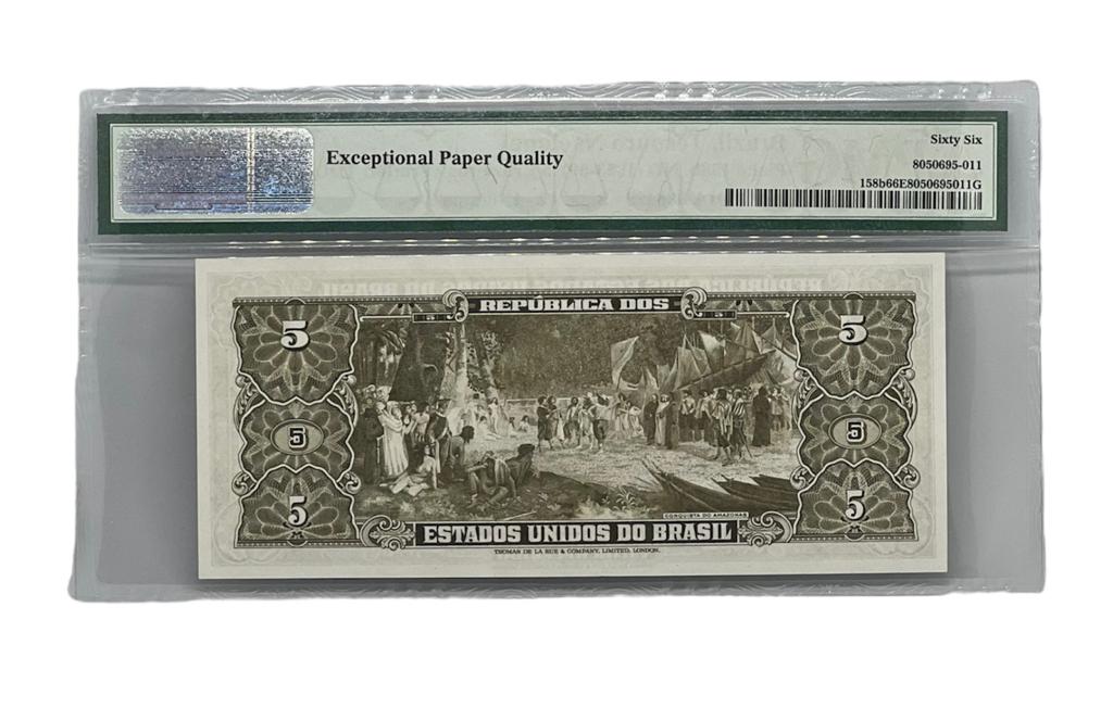 5 Cruzeiros. Brasil, P-158b ND (1953-59), PMG 66 Gem UNC