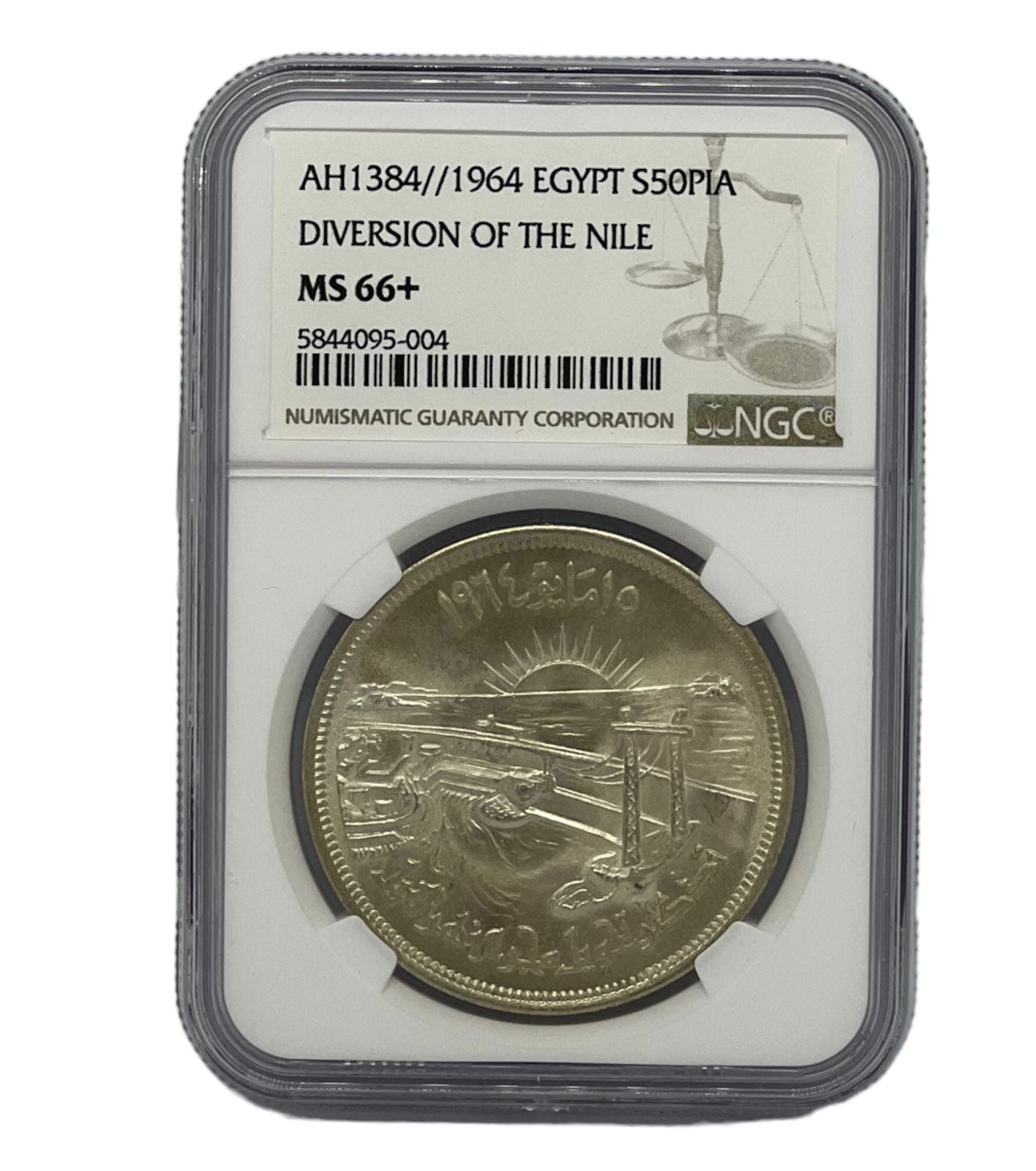 50 Piasters Plata AH1384/1964 Egipto NGC