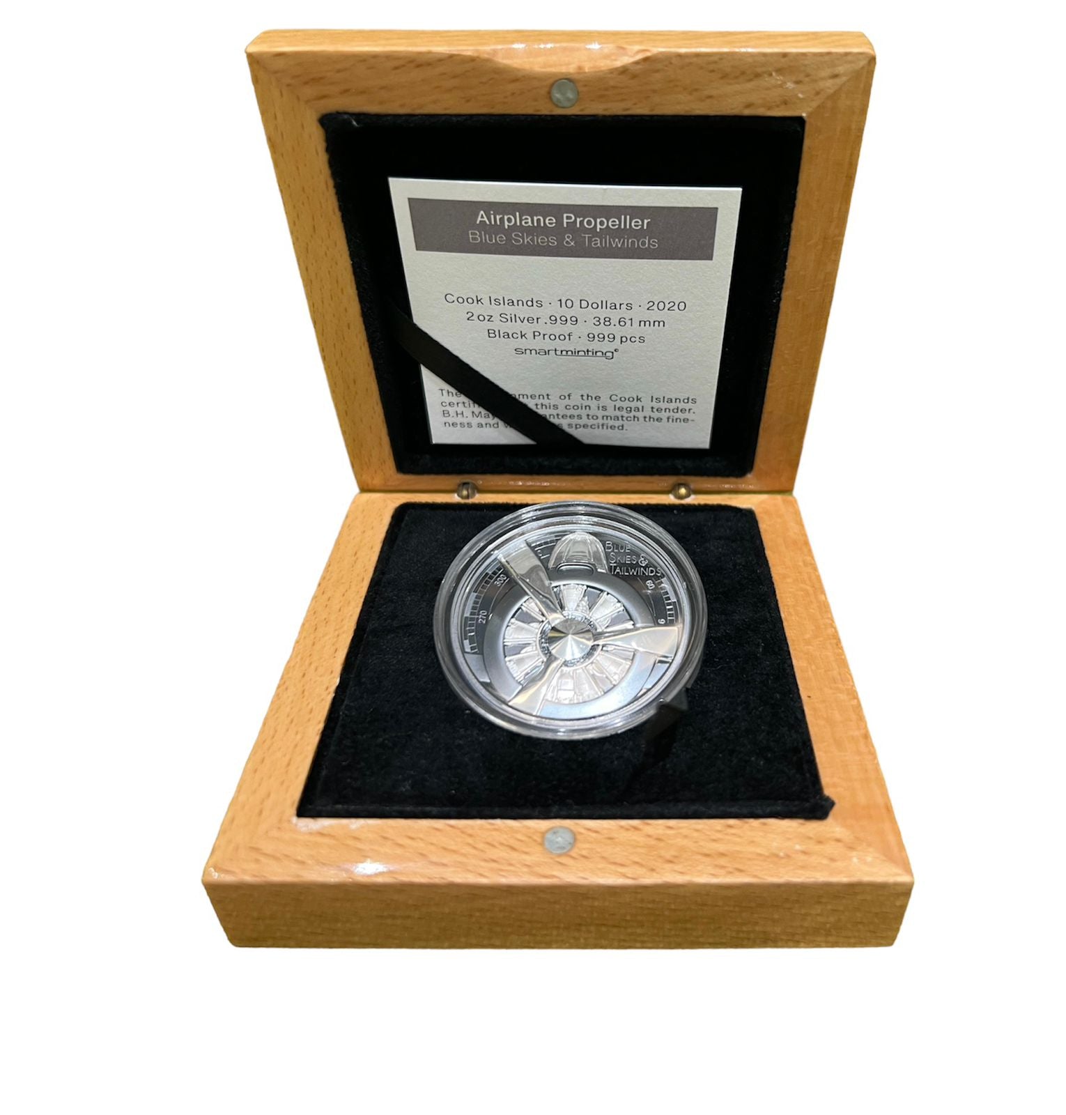 Airplane Propeller 10$ 2oz Moneda de Plata 2020 Cook Islands